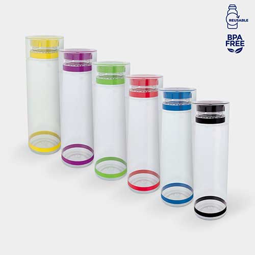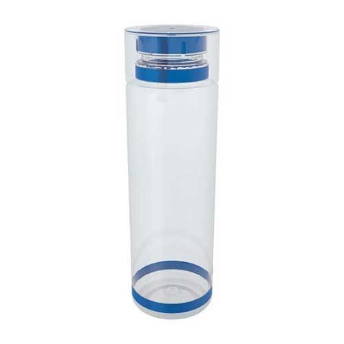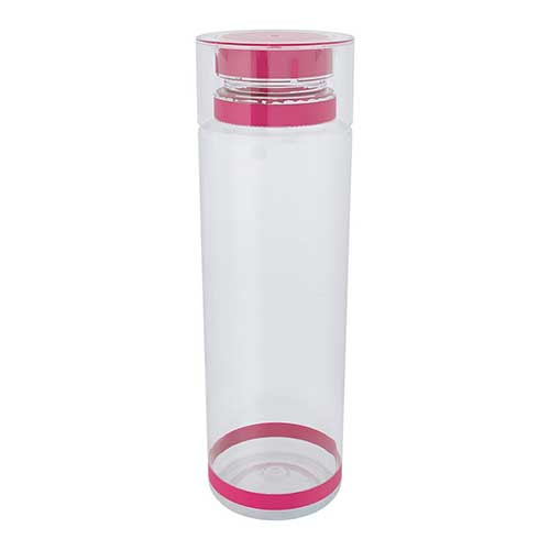 Sistema de rosca twist-off que permite abrir y cerrar la tapa en un giro. Cuenta con dos bandas elásticas de silicón, una en el cuello y otra en la base del cilindro.