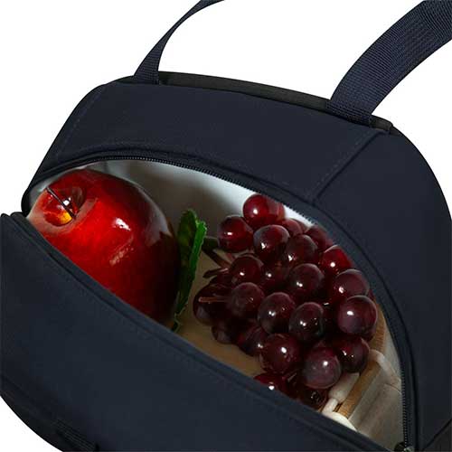 Lonchera con un compartimento principal espacioso y una bolsa frontal adicional, ofrece amplio espacio para alimentos y snacks. Los cierres con puller ergonómico y resistente facilitan su apertura y cierre, mientras que la base antiderrapante, proporciona estabilidad en superficies planas. Sus asas de mano, brindan comodidad al transportarlas y los materiales resistentes aseguran su portabilidad a cualquier lugar.