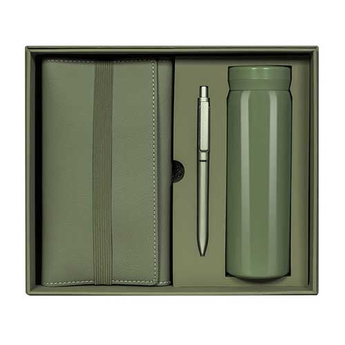 Set de regalo. Incluye: termo de doble pared metálica con tapa de plástico con sistema de rosca, bolígrafo de plástico con sistema push, libreta con pasta de curpiel suave con cierre de elástico y 70 hojas a rayas, al interior de la libreta incluye dos bloques de notas adhesivas y 5 banderines, además de agregar compartimentos para tarjetas o pequeños documentos. Presentado con atención al detalle en un empaque de calidad y mucho color, este set es el regalo perfecto para cualquier ocasión especial.