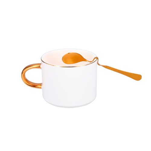 Taza de cerámica con cuchara de acero inoxidable para sujeción en el borde.