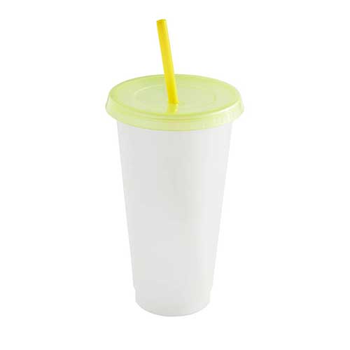 Vaso de plástico de una pared. Añade fantasía y diversión, con este vaso que cambia de color al verter bebidas frías. Su tapa y popote, coinciden con el tono que el vaso revelará al enfriarse, dando como resultado, un conjunto armonioso y divertido. Perfecto para quienes buscan una experiencia refrescante y visualmente atractiva en cada bebida. Capacidad 27 Oz. Base de 6.4 cm.